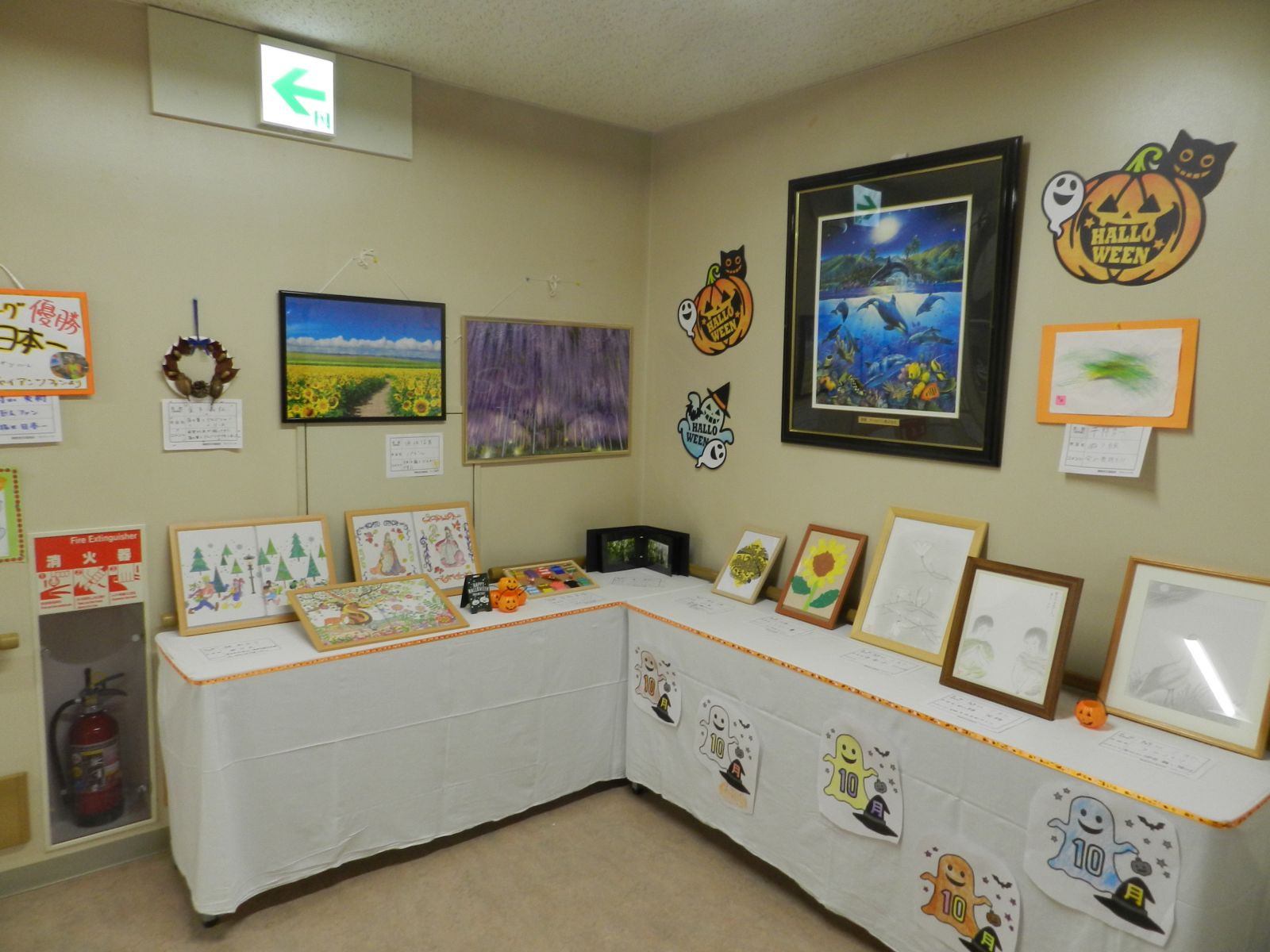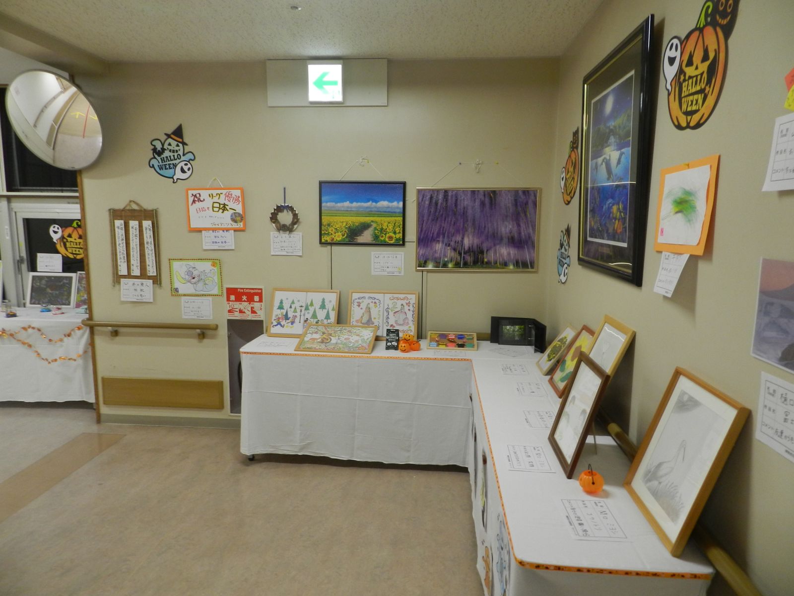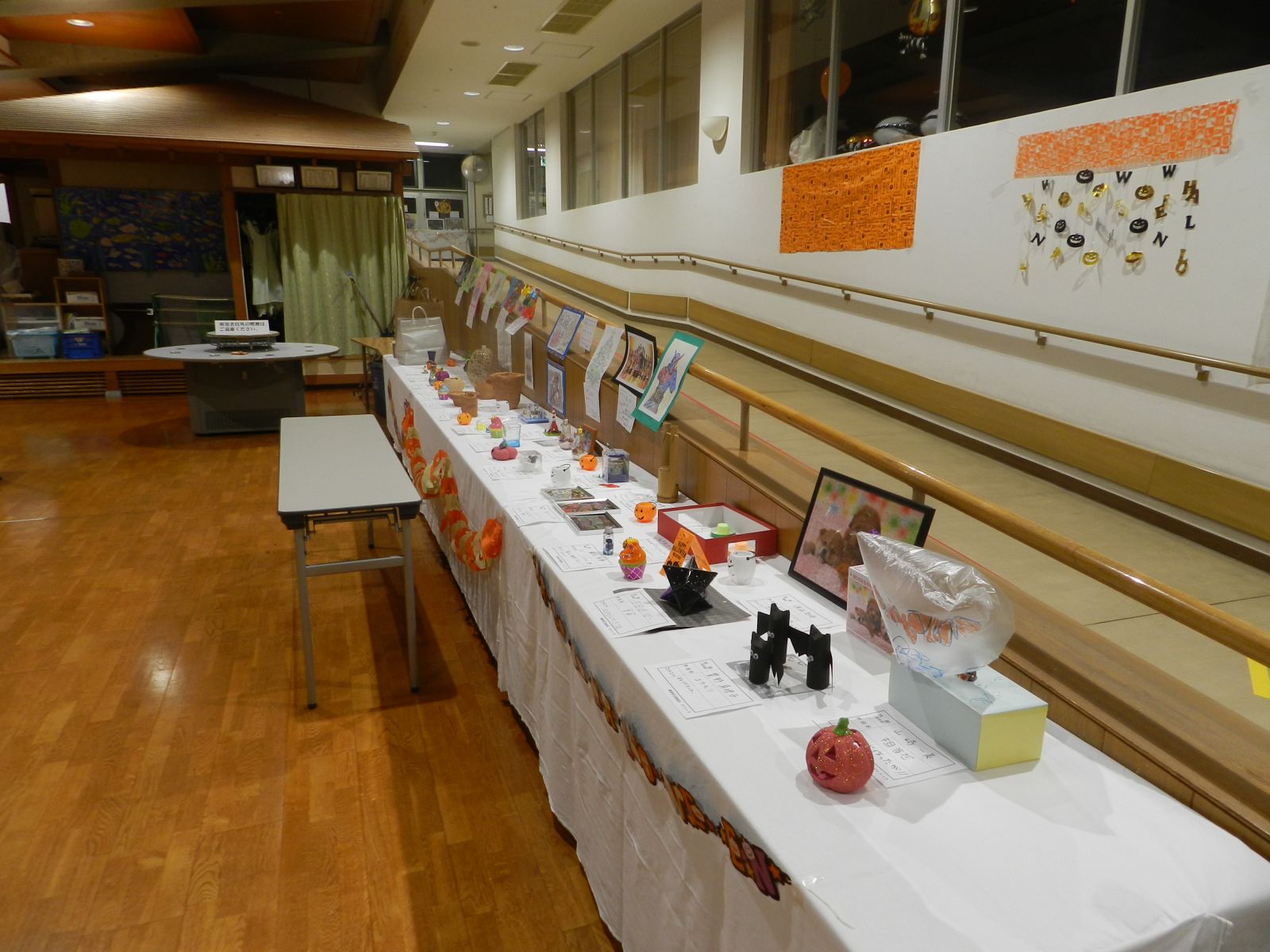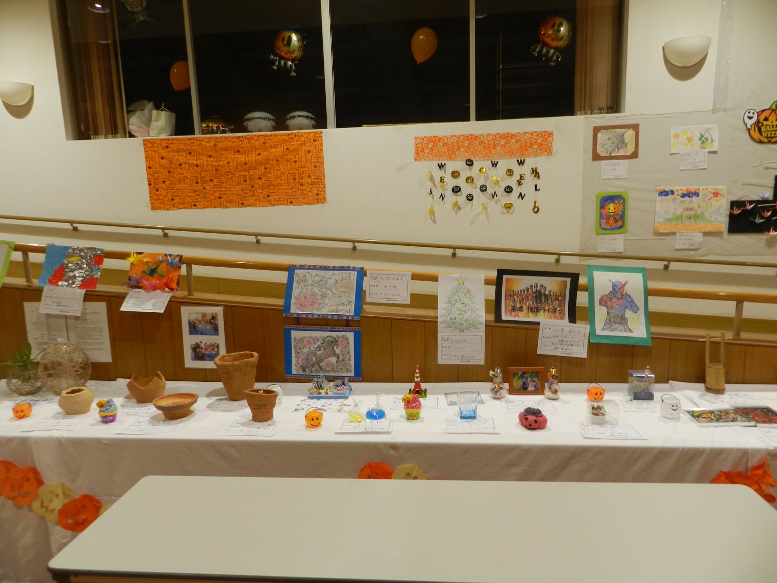 令和元年10月26日(土)マイトーラ文化祭を開催しました。今年も、利用者さんが日中活動等で作成された作品と職員による作品やボランティアさんの作品も並んで、施設内の展示場は力作揃いで賑やかになりました。飾り付けは、毎年この時期に開催されるハロウインにちなんだ飾り付けを行い、開催前日は、業務終了後全職員で最後の飾り付けを行いました。
