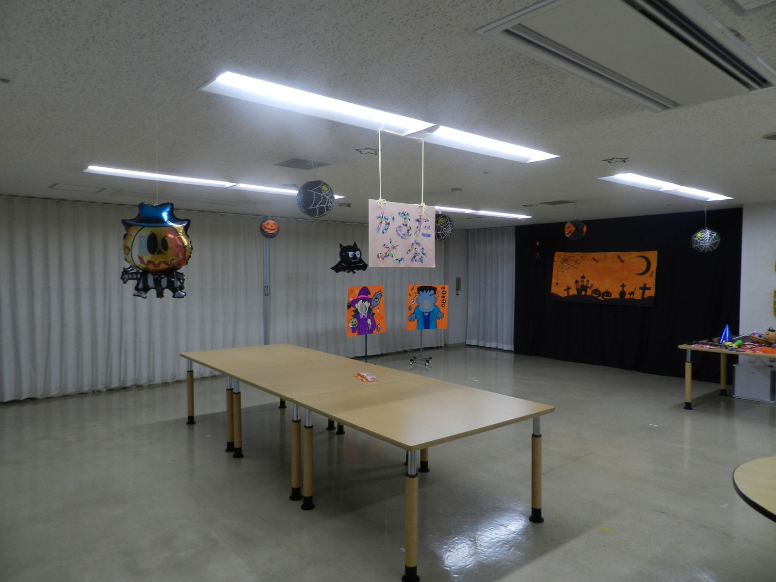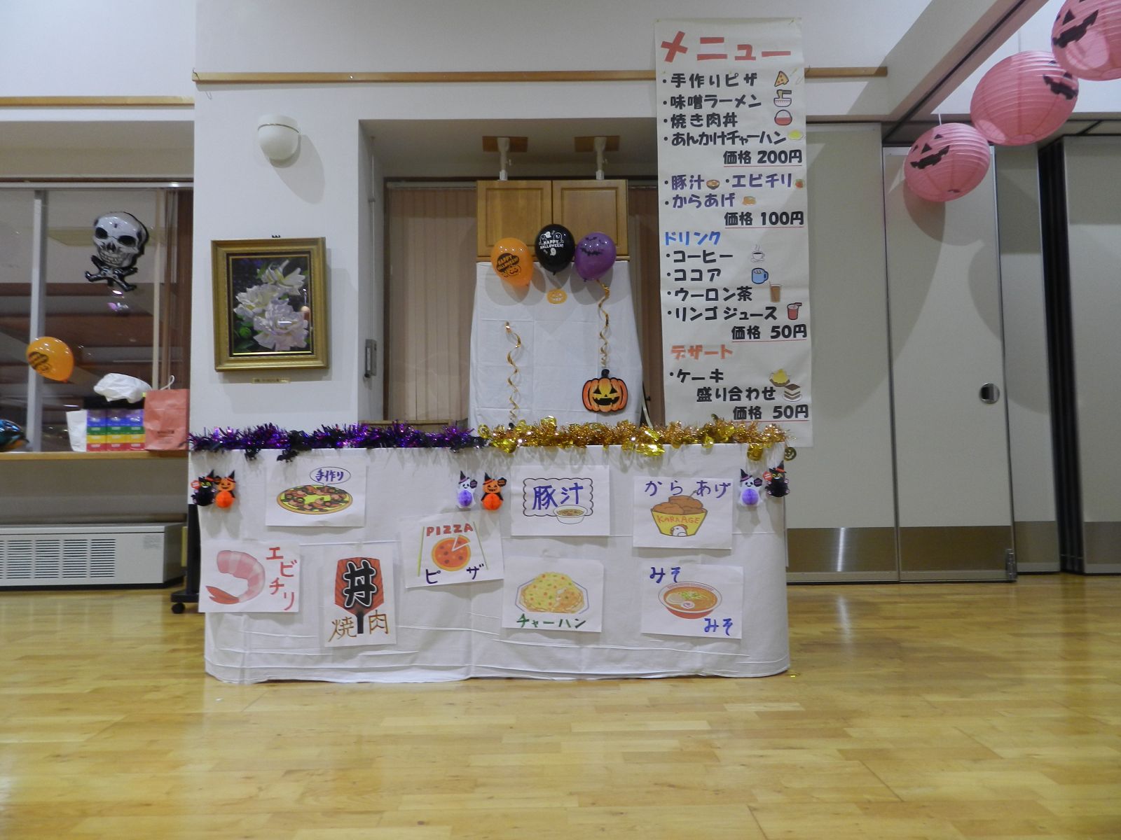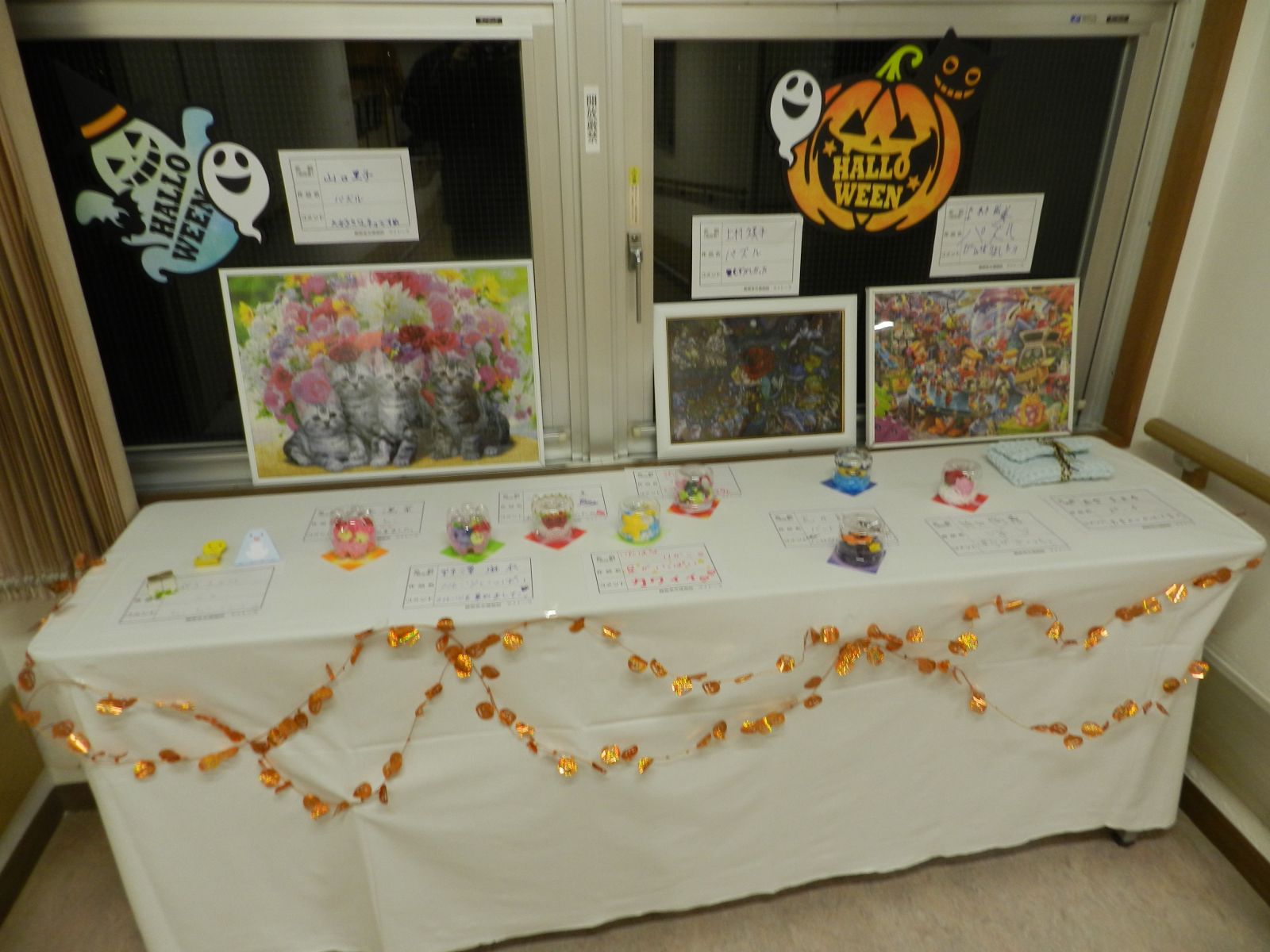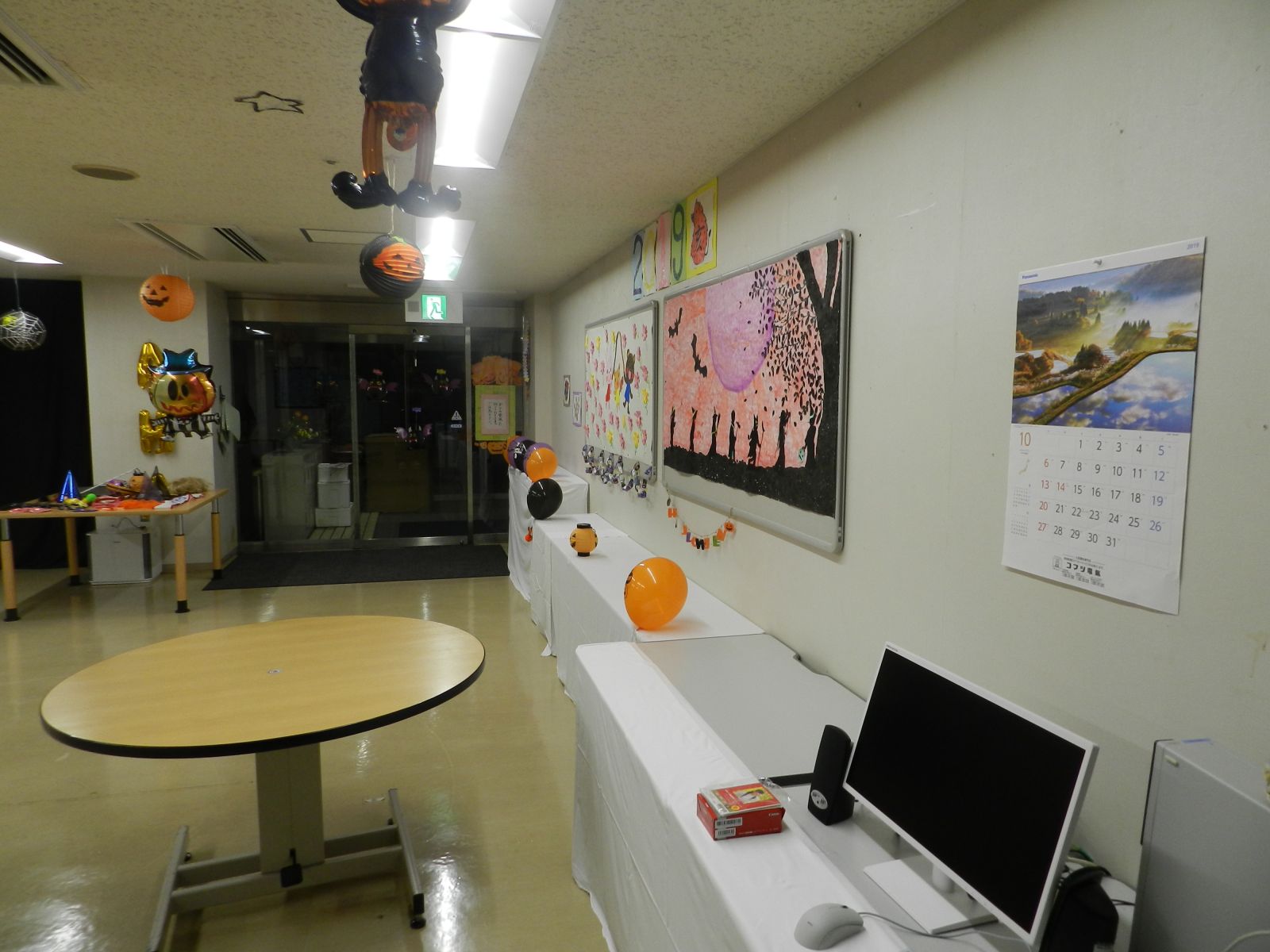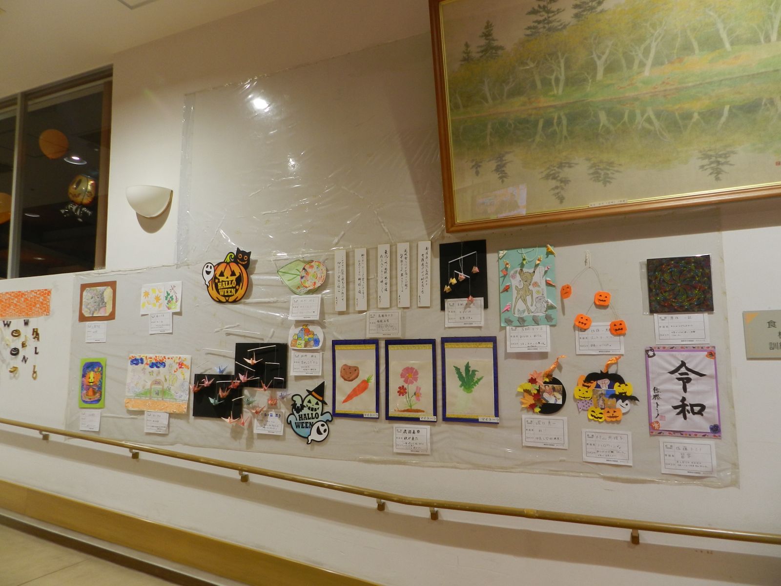 令和元年10月26日(土)マイトーラ文化祭を開催しました。今年も、利用者さんが日中活動等で作成された作品と職員による作品やボランティアさんの作品も並んで、施設内の展示場は力作揃いで賑やかになりました。飾り付けは、毎年この時期に開催されるハロウインにちなんだ飾り付けを行い、開催前日は、業務終了後全職員で最後の飾り付けを行いました。