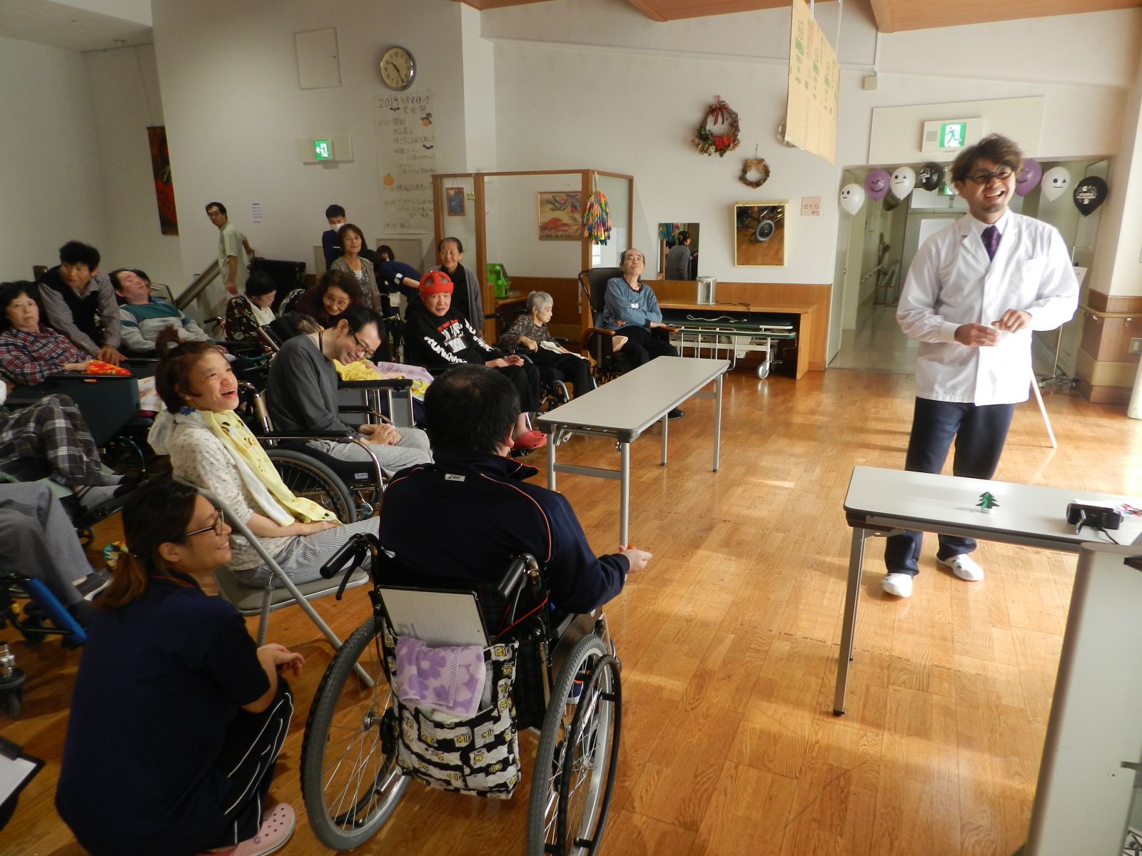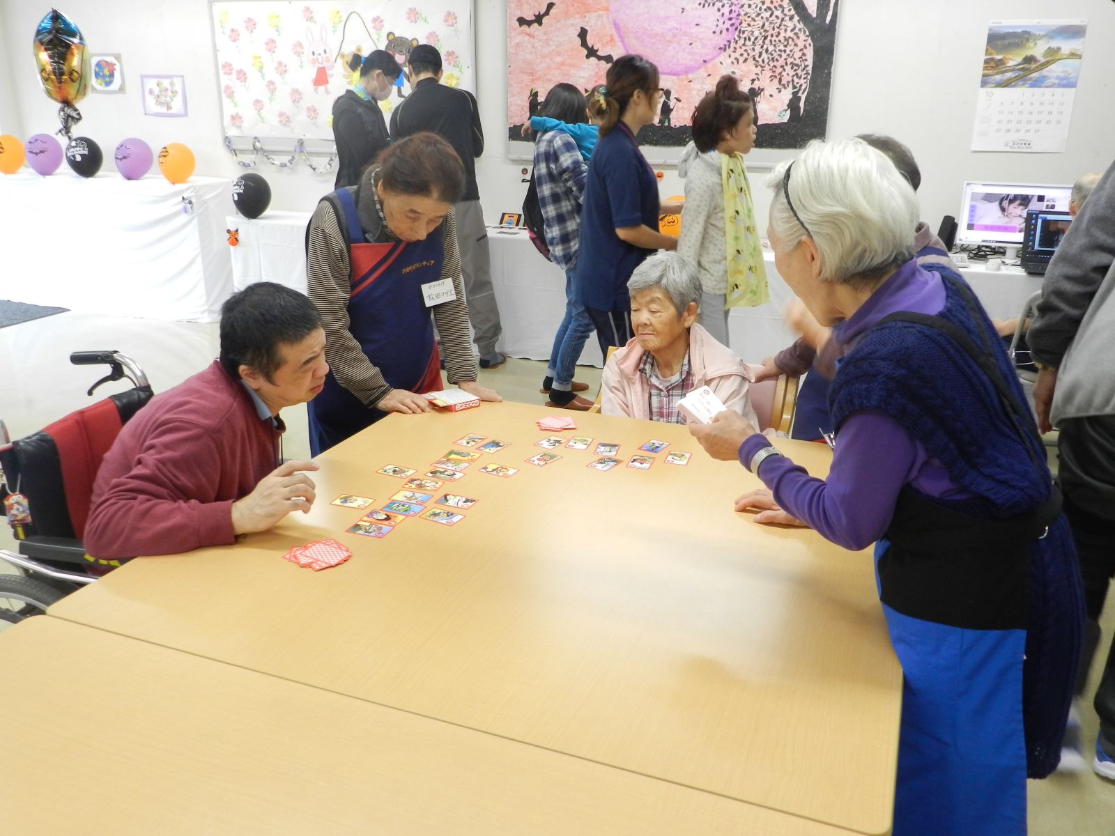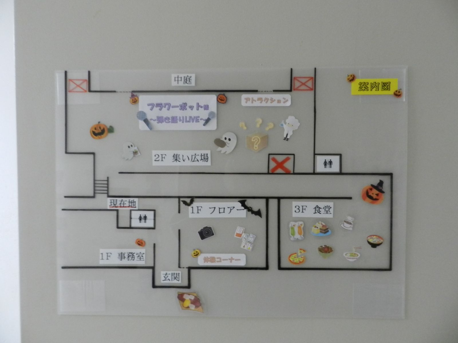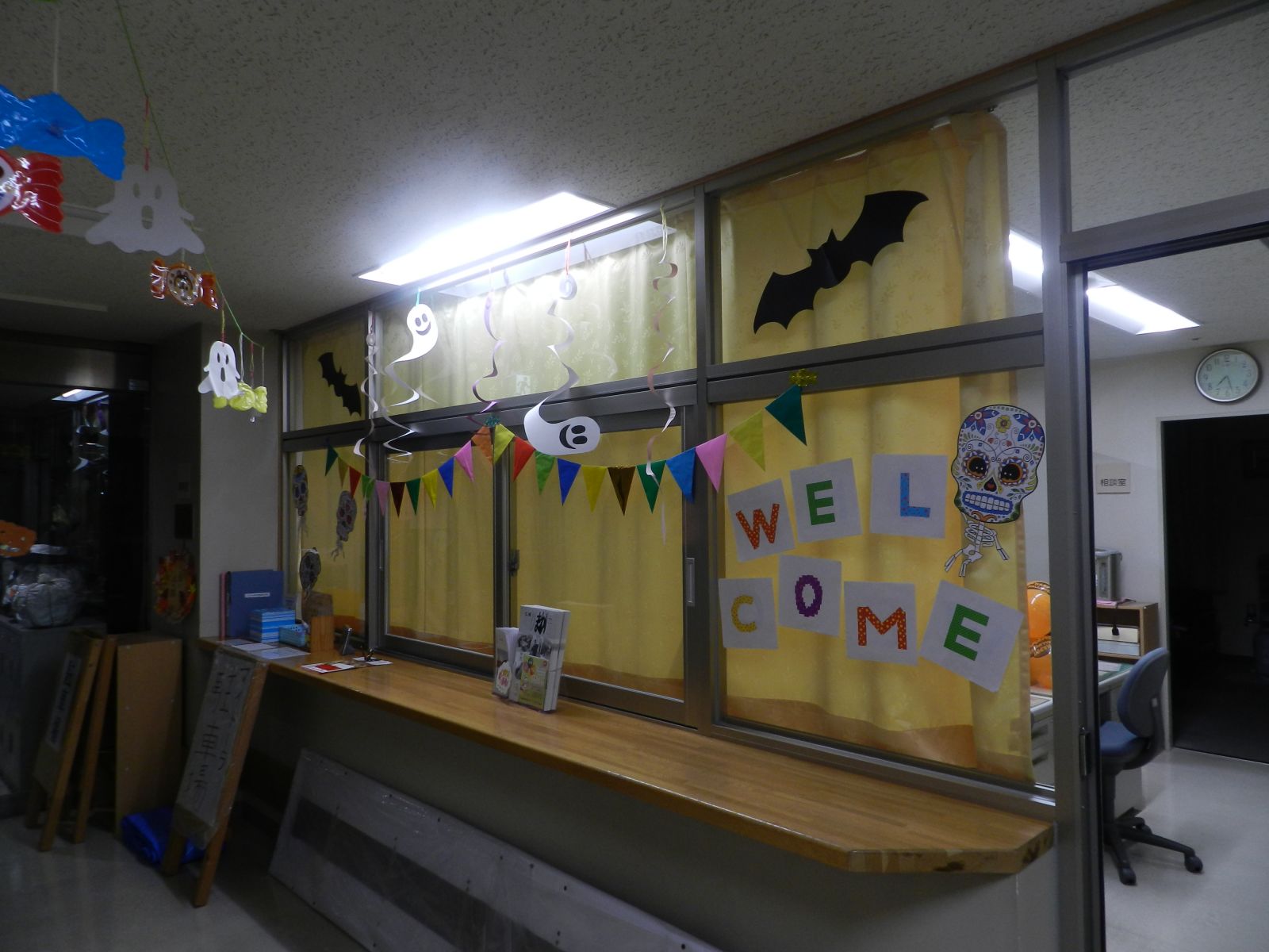 令和元年10月26日(土)マイトーラ文化祭を開催しました。今年も、利用者さんが日中活動等で作成された作品と職員による作品やボランティアさんの作品も並んで、施設内の展示場は力作揃いで賑やかになりました。飾り付けは、毎年この時期に開催されるハロウインにちなんだ飾り付けを行い、開催前日は、業務終了後全職員で最後の飾り付けを行いました。