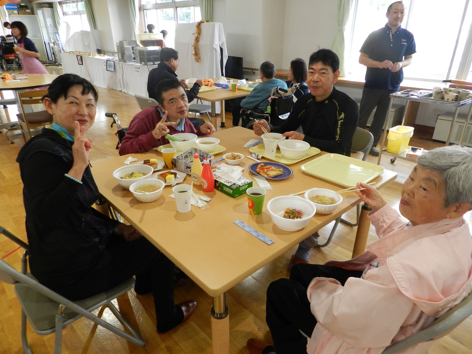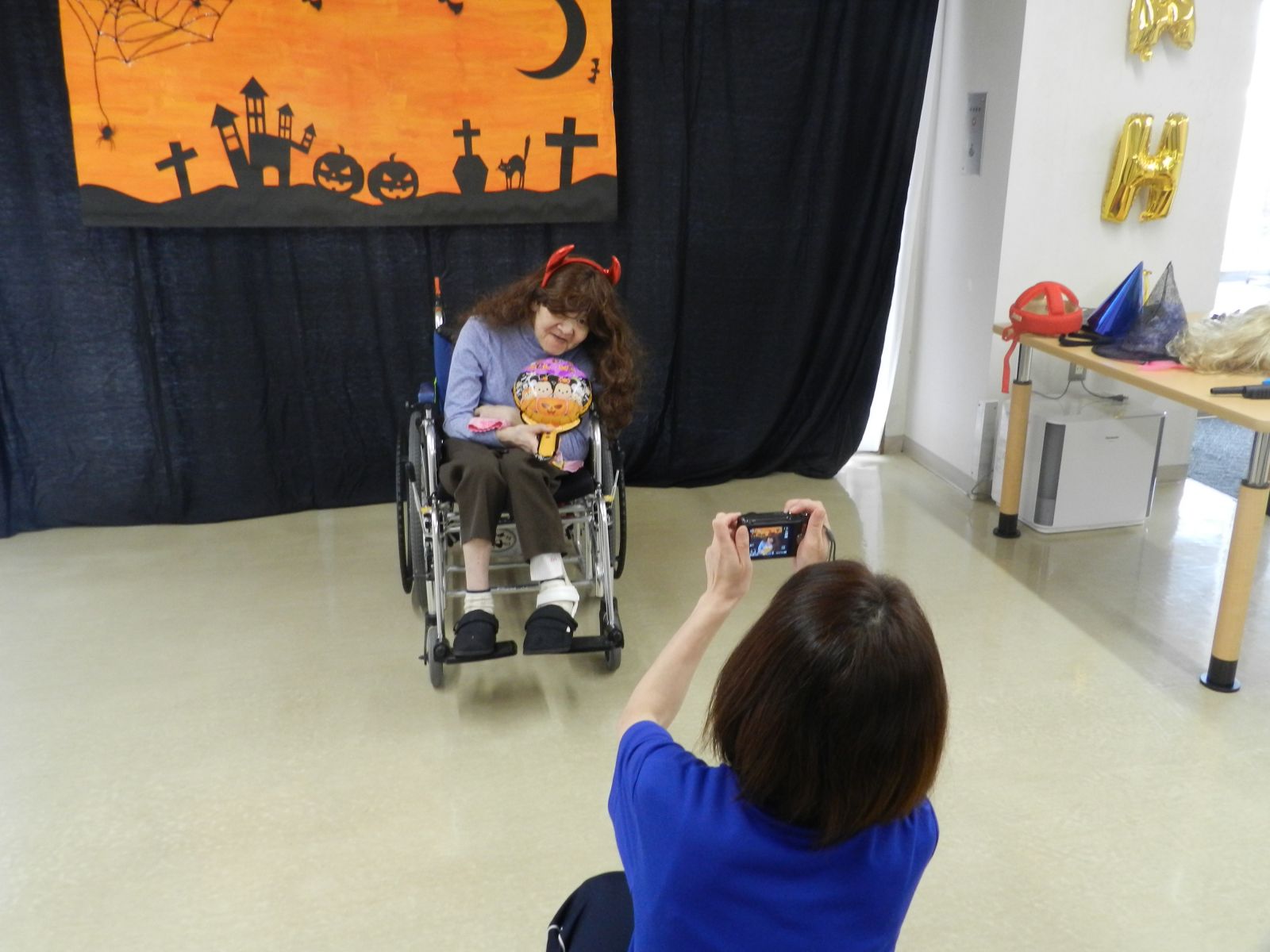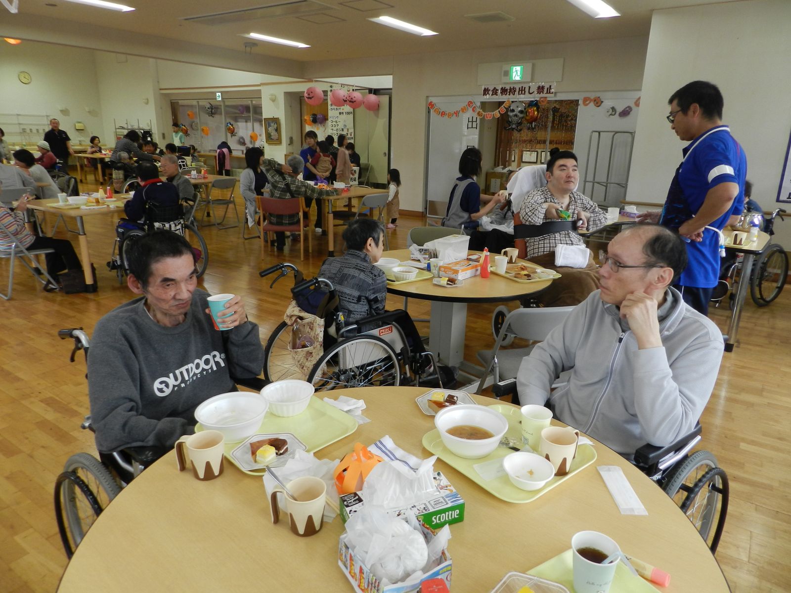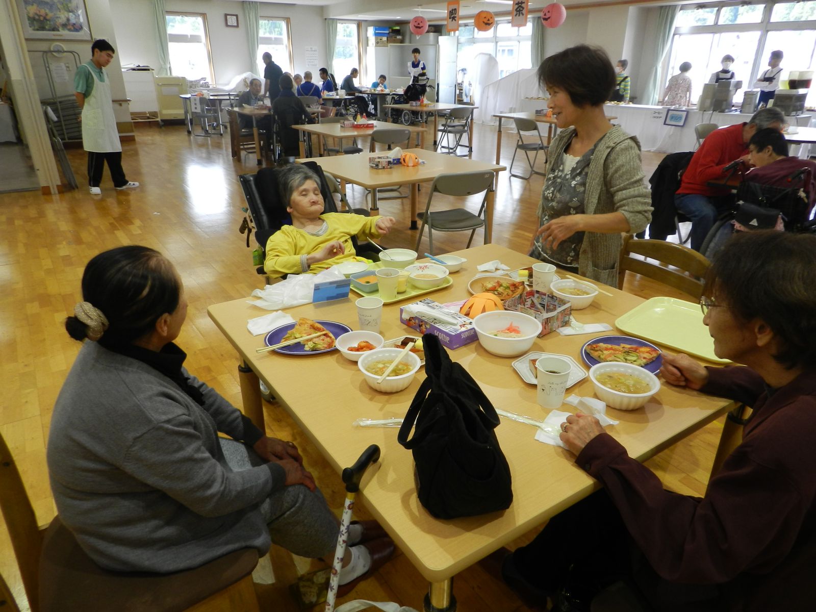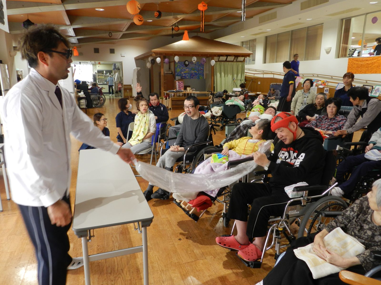 令和元年10月26日(土)マイトーラ文化祭を開催しました。今年も、利用者さんが日中活動等で作成された作品と職員による作品やボランティアさんの作品も並んで、施設内の展示場は力作揃いで賑やかになりました。飾り付けは、毎年この時期に開催されるハロウインにちなんだ飾り付けを行い、開催前日は、業務終了後全職員で最後の飾り付けを行いました。